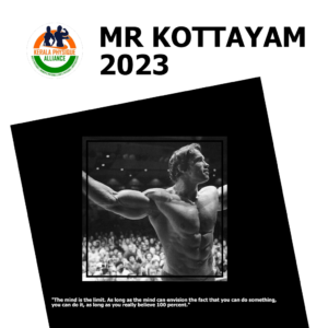 Mr KOTTAYAM 2023 Leave a Comment / Exclusive, Premium / By abeyva@yahoo.com We are happy to announce NPC MR KOTTAYAM 2023 will be conducted on 19th February Sunday at Municipal Town hall Pala. Weighing session will be on 18th Saturday. Furter details will be sheared soon.